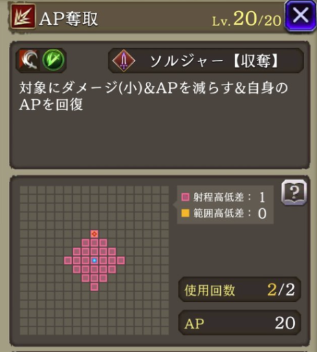 対象にダメージ(小)&APを減らす&自身のAPを20回復 |