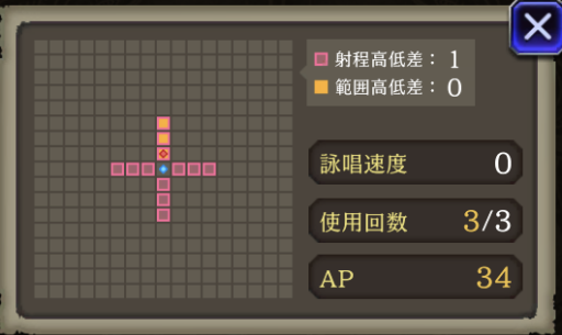 範囲内の対象にダメージ(中)&3ターン攻撃・魔力ダウン |